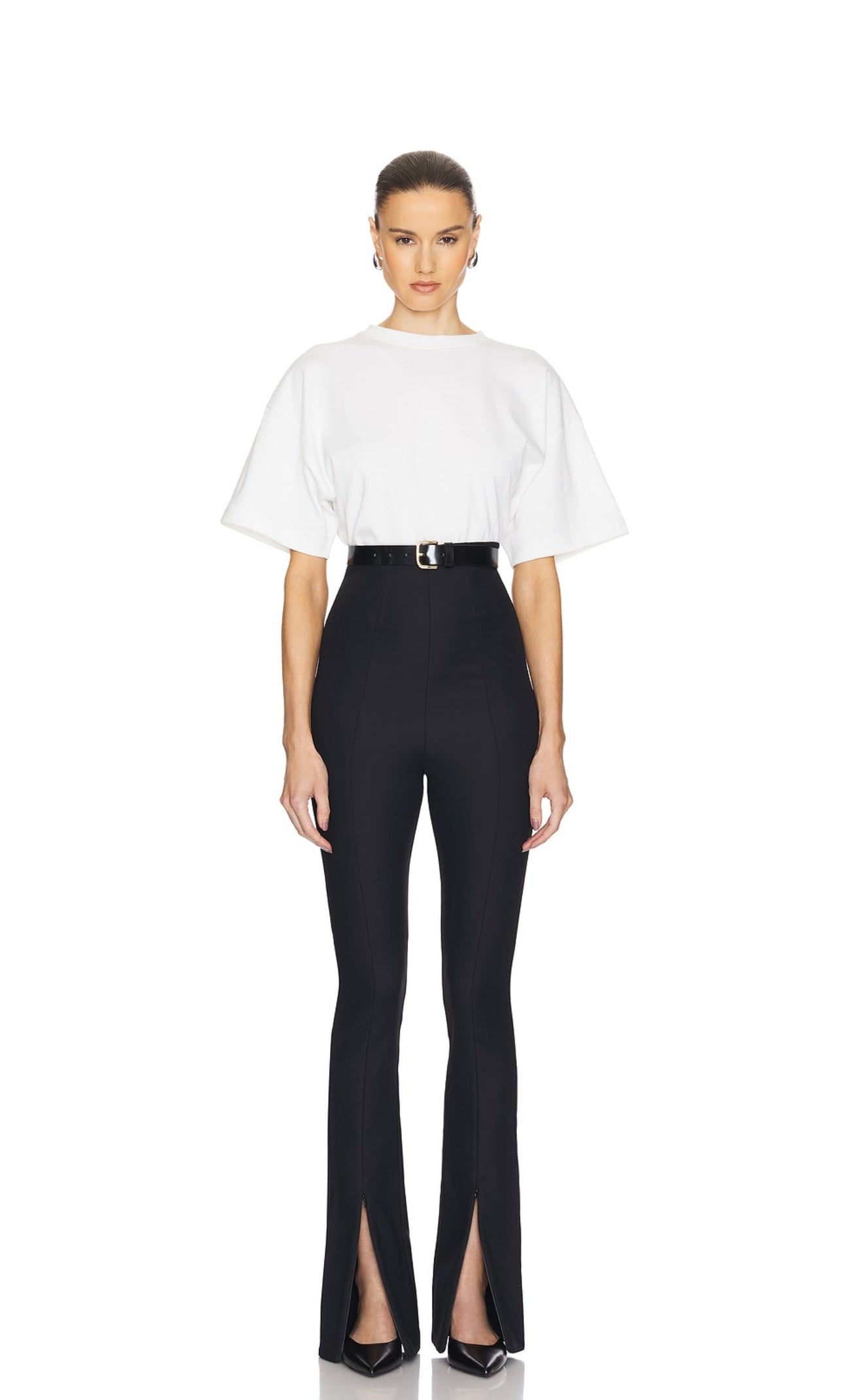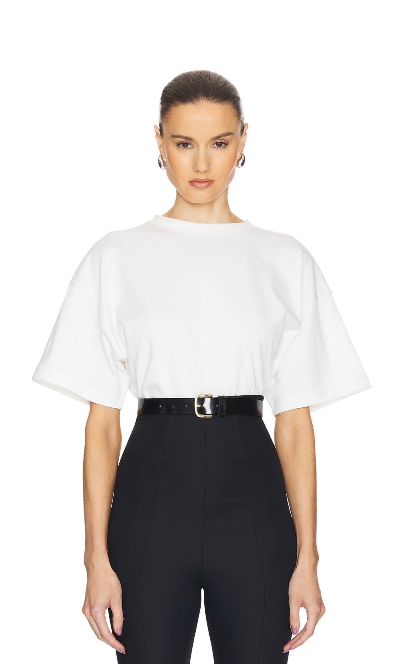 A fresh take on the classic white tee. The Shari is cut from lightweight cotton jersey with exaggerated short sleeves and a slightly cropped fit.